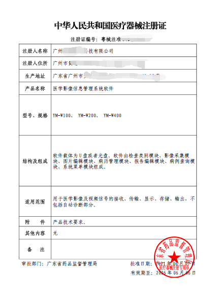 醫學影像信息管理系統軟件注冊證