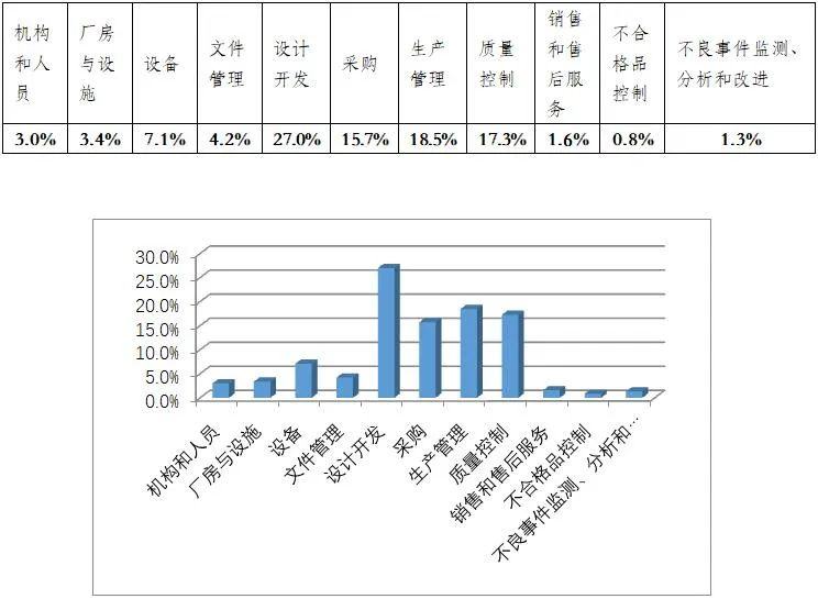 一、2022年度檢查概況 2022年度上海市器審中心依據《醫療器械生產質量管理規范》(以下簡稱規范)對有源類醫療器械生產企業(設備類,不含獨立軟件產品)開展了現場體系核查,涉及核查產品為185個。 從不符合項在《規范》中各章節的分布情況來看,規范的11個章節均有涉及。從各章節不符合項總數占比來看,占據前四位的分別為設計開發(27%)、生產管理(18.5%)、質量管理(17.3%)和采購(15.7%)。不符合項分布情況詳見圖一。 圖一 不符合項分布情況 三、現場核查常見問題 從2022年度有源醫療器械的現場核查發現的不符合項中出現問題最多的4個規范章節進行梳理: 現場檢查發現設計過程控制存在不足,主要體現在以下幾方面: (1)注冊人委托生產企業進行生產時,委托協議中雙方對研發的職責不明確,注冊人和受托生產企業對設計文件的轉移不充分。 (2)設計開發研發過程和輸出資料缺失。如現場未查見主控板的元器件、BOM清單、技術圖紙、主板電路原理圖、軟件源代碼等技術研發資料,或與實際生產樣機、產品說明書存在不一致。 (3)設計驗證不充分。如缺少對產品主要性能參數或與外部配合使用器械的驗證及相關記錄,產品部分功能未在技術要求中提及,未完成相關驗證。 (4)設計變更未進行及時的識別、評審、驗證和確認。 (5)產品風險分析及控制措施評價不充分,如產品開發新功能時未充分考慮臨床使用過程中的風險,未考慮產品故障情況下的非預期使用可能產生的風險。 現場檢查主要發現采購質量協議中未明確采購要求、主要部件未能滿足采購追溯等問題,主要體現在以下幾方面: (1)采購質量協議或采購合同中對主要采購部件的材質、性能、技術參數、質量標準等方面未做明確要求。 (2)原材料的進貨檢驗規范或驗證內容浮于表面,僅對外觀、尺寸提出要求,未覆蓋關鍵性能參數,與技術要求中整機性能參數有沖突。 (3)涉及軟件委外研發時,開發協議中未明確軟件需求、交付技術文件內容、驗收標準、軟件更新及維護等內容。 (4)關鍵部件未能追溯到供方的批號,對原材料批量問題無法開展分析和追溯。 現場檢查發現生產工藝不充分或關鍵控制點不明確、生產記錄不完整、主要零/部件無法追溯等問題,主要體現在以下幾方面: (1)部分企業存在生產過程簡單的問題,未對產品生產工序進行合理、有效分解細化,過度依賴部件模塊化。 (2)未對調試等關鍵工序制定詳細的作業指導書,存在依據經驗進行生產的情況。 (3)生產過程未按照作業指導書中的要求執行,生產記錄簡單,未記錄關鍵部件序列號或編號、軟件完整版本號,無法滿足可追溯的要求。 現場檢查發現檢驗規程不充分、檢驗記錄不完整、檢驗過程無法追溯等問題,主要體現在以下幾方面: (1)對檢驗規程未能覆蓋產品技術要求的檢驗項目,也未采取抽檢或過程控制等有效的質量管控方式。 (2)檢驗方法與產品技術要求或國家標準有區別時,企業未對所采用的方法進行科學有效的確認,未能提供上述不同方法的等同性說明。 (3)檢驗記錄缺少原始數值記錄,檢驗結果無法重現或追溯。 (4)對于檢驗條件和設備要求較高,企業不具備檢驗能力的,也未委托具有資質的機構進行檢驗,以證明產品符合強制性標準和經注冊的產品技術要求。 (5)產品分別存在使用模式和檢驗模式的情況下,未對檢驗用軟件進行充分確認。